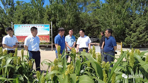 在酒用高粱訂單專供基地,陳長華一行實地查看了高粱作物的長勢情況,并對公司的種植模式、作業(yè)標(biāo)準(zhǔn)、農(nóng)藝措施、生產(chǎn)經(jīng)營模式等方面的先進經(jīng)驗和做法給予高度評價。